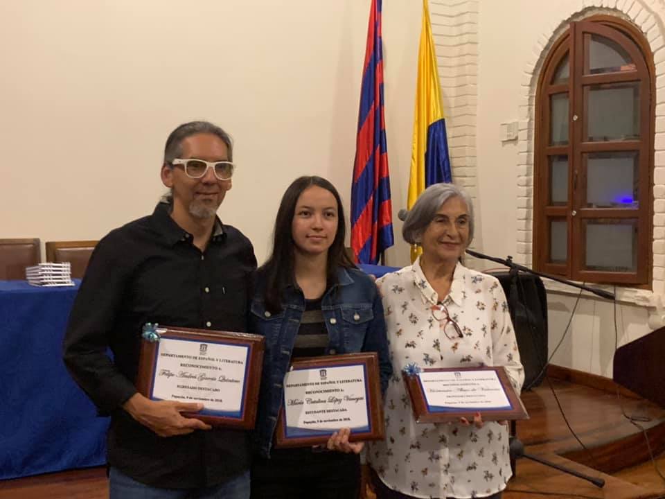 Además de las conferencias de los investigadores invitados, en el encuentro se realizaron algunos reconocimientos, donde el docente Felipe García Quintero se llevó la distinción a Egresado Destacado por su trayectoria académica e investigativa, dejando en alto el nombre del Departamento de Español y Literatura.