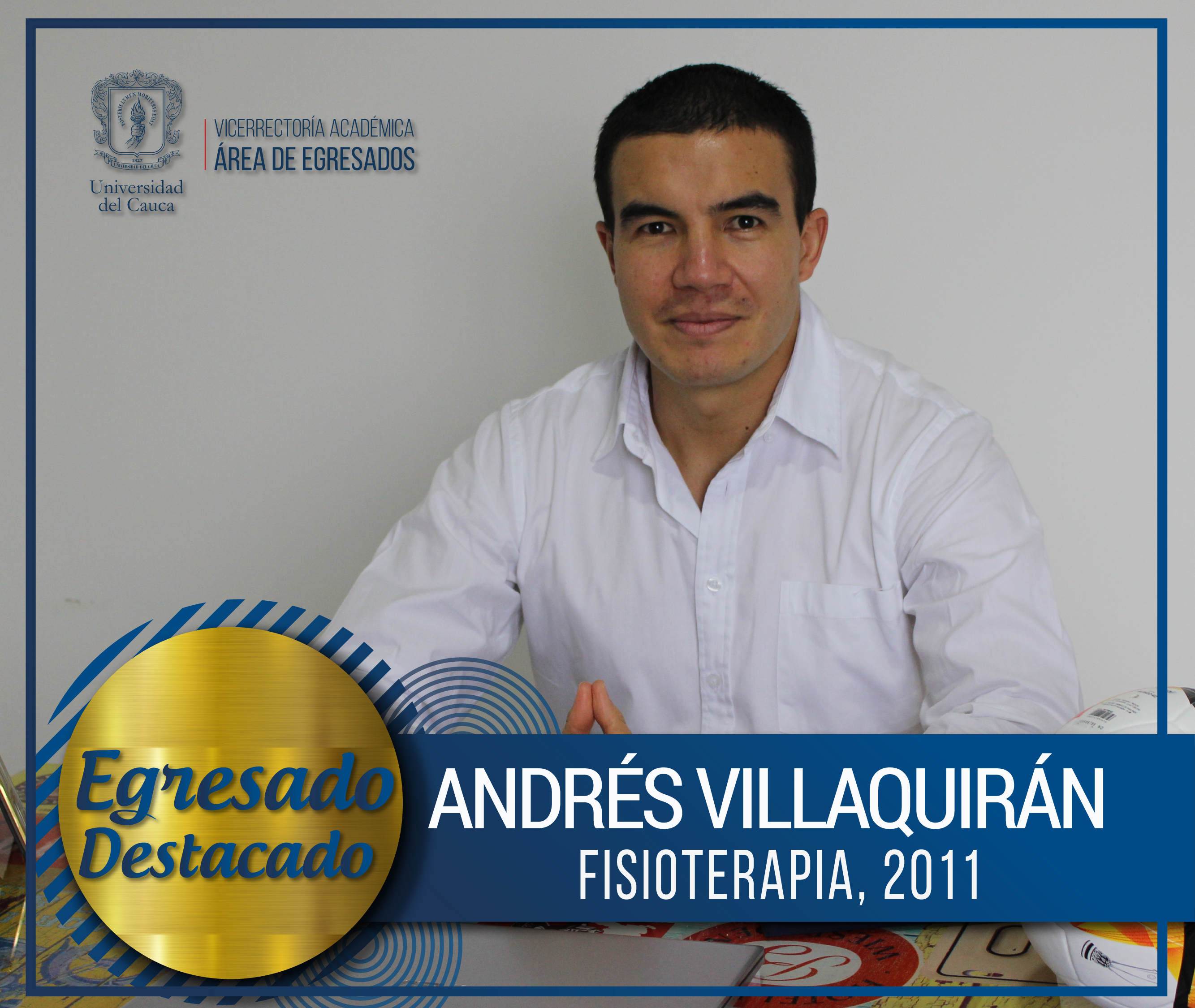 “Agradezco al deporte porque fue quien me abrió las puertas para ingresar como estudiante de fisioterapia, ingresé como deportista en el 2006 ya que en ese tiempo la Universidad del Cauca tenía la modalidad de recibir deportistas destacados” explica Villaquirán sobre su ingreso a la Universidad. Una vez egresa de Unicauca, Andrés comienza trabajando primero en un programa de actividad física en la población del Adulto Mayor de Indeportes Cauca, y segundo en un centro de acondicionamiento como fisioterapeuta. En el año 2012, al mismo tiempo que empieza a realizar la maestría, continua su proceso en Indeportes en otro programa llamado “Caucanos de Oro”, donde trabajaba con los deportistas de alto rendimiento del departamento. En ese mismo año, en el mes de abril ingresa como docente ocasional para orientar la parte de Rehabilitación deportiva y prevención de lesiones en el programa de Fisioterapia.