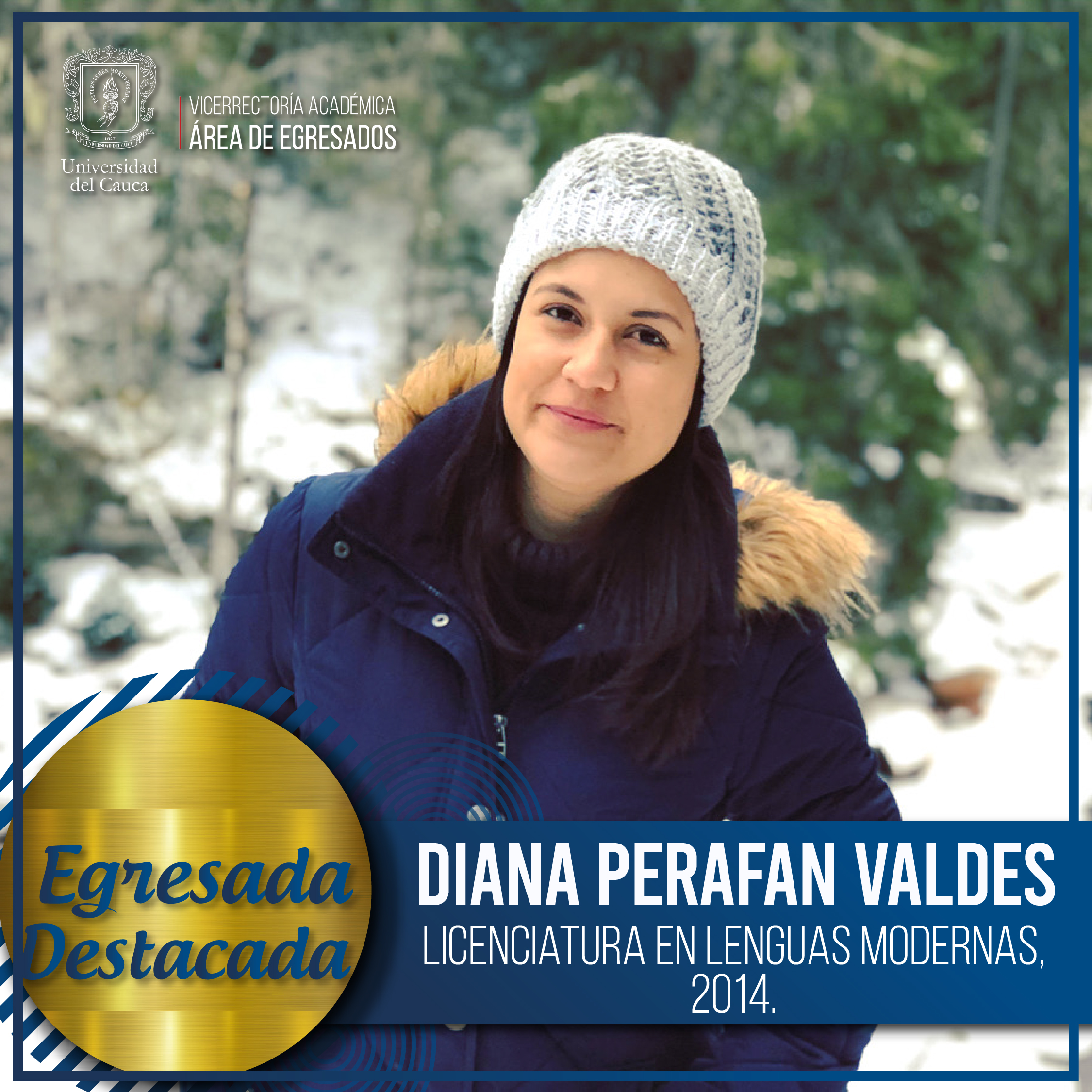 Diana Fernanda Perafán Valdes se graduó en el 2014 como licenciada en lenguas modernas en inglés francés de la Universidad del Cauca. Ella, desde que se encontraba en el colegio, siempre ha manifestado que sus intereses siempre han sido los idiomas y la enseñanza, por ello, decidió estudiar lenguas modernas, una profesión que le permite combinar estos dos temas en una profesión.