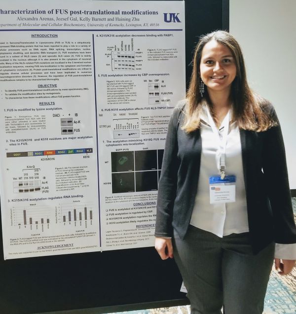 Con su proyecto de tesis buscó identificar las modificaciones post translacionales que pueden alterar la función de la proteína FUS, la cual ha sido reportada por tener mutaciones en ELA. Encontró que una modificación post-translacional llamada acetilación, evita que la proteína FUS pueda interactuar con ácidos nucleicos como el RNA.