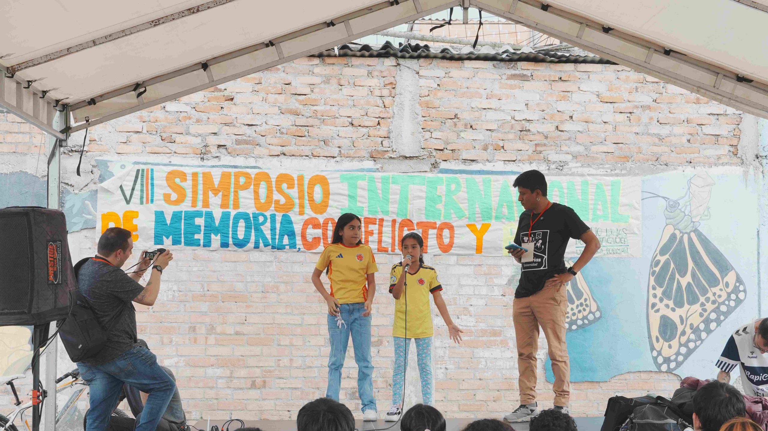 En el barrio también venían procesos andando; precisamente nos articulamos con la Junta de Acción Comunal y Ciudadanías para la Paz, una plataforma nacional que viene acompañando las iniciativas urbanas alrededor de la participación en los procesos de paz y la construcción de memorias. Y en conjunto, nos dimos a la tarea de hacer y pensar el VIII Simposio Internacional de Memoria, Conflicto y Paz: arte, tecnologías y memorias, en el barrio Lomas de Comfacauca, para los días 2 y 3 de octubre. Los retos logísticos fueron de envergadura, pero sobre todo iniciar espacios previos en el barrio y la Universidad que permitieran un escenario propicio para una conversación necesaria y urgente, ante tiempos y ritmos distantes en muchas ocasiones.