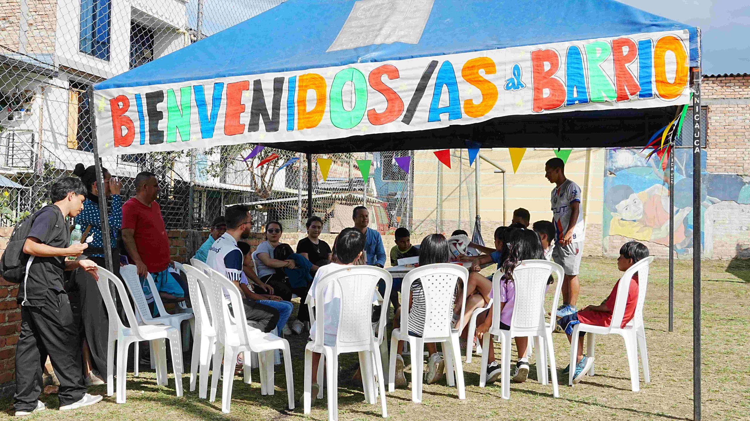 Este cambio de aula, de espacio, de lugar, de memorias, implicaba pensar este camino como una conversación, soportado en una idea arraigada en mi vida y es que el conocimiento y la sabiduría están en todas partes, en todo lugar, en todo contexto de lo humano; por supuesto en el barrio, en sus habitantes, en sus memorias que tejen la vida de la región en dimensiones ambientales, territoriales, culturales y sociales. No se trataba de un cambio de lenguaje o denominación, sino de pensarnos un cambio de la relación que ha constituido el conocimiento y la universidad con su contexto. Al barrio Lomas de Comfacauca ya había llegado la Universidad, el maestro César Alfaro había adelantado una década atrás, con estudiantes de la Facultad de Artes, una iniciativa de memoria que todavía permanece en la cancha de fútbol principal, con la cotidianidad plasmada en un mural de grandes proporciones que todavía conserva sus colores y esencia.