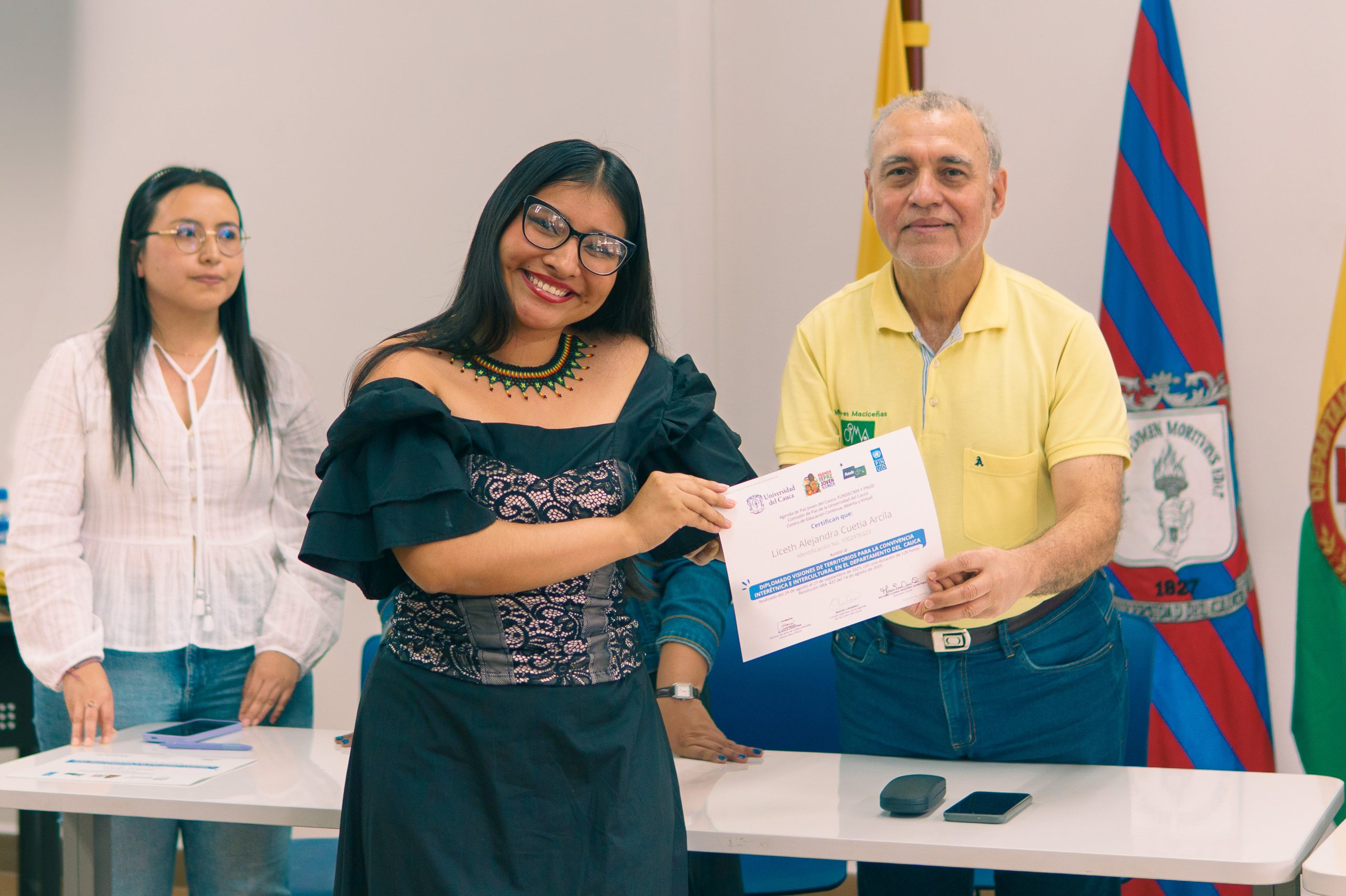 Entre quienes culminaron este proceso se encuentra Liceth Alejandra Cuetia Arcila, joven indígena del municipio de Corinto, que en su voz refleja el espíritu amplio y profundo del diplomado, “La Agenda Paz Joven es una apuesta muy grande por todas las juventudes del Cauca. Nosotros hacemos una avanzada por los derechos de los pueblos indígenas, en la pervivencia cultural pero también en la educativa, y digamos que esto hace parte fundamental de hermanarnos con otros pueblos, no solamente indígenas sino también campesinos y afrodescendientes, y Agenda Paz, nos permite hilar un tejido mucho más grande a nivel social y comunitario para que nosotros podamos articular acciones conjuntas en todos los territorios del departamento”, expresó con firmeza.