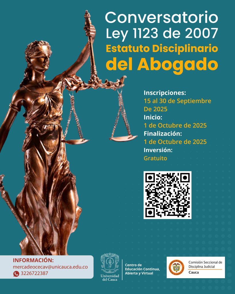 Organiza: Facultad de Derecho, Ciencias Políticas y Sociales, el Departamento de Derecho Laboral y la Comisión Seccional de Disciplina Judicial del Cauca.